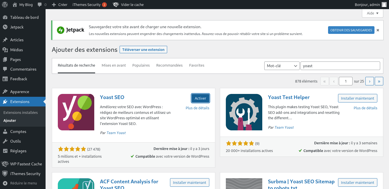 Dans ton tableau de bord WordPress, va dans "Plugins" > "Ajouter" et cherche le plugin que tu as choisi. Clique sur "Installer" puis "Activer". Easy, non ?